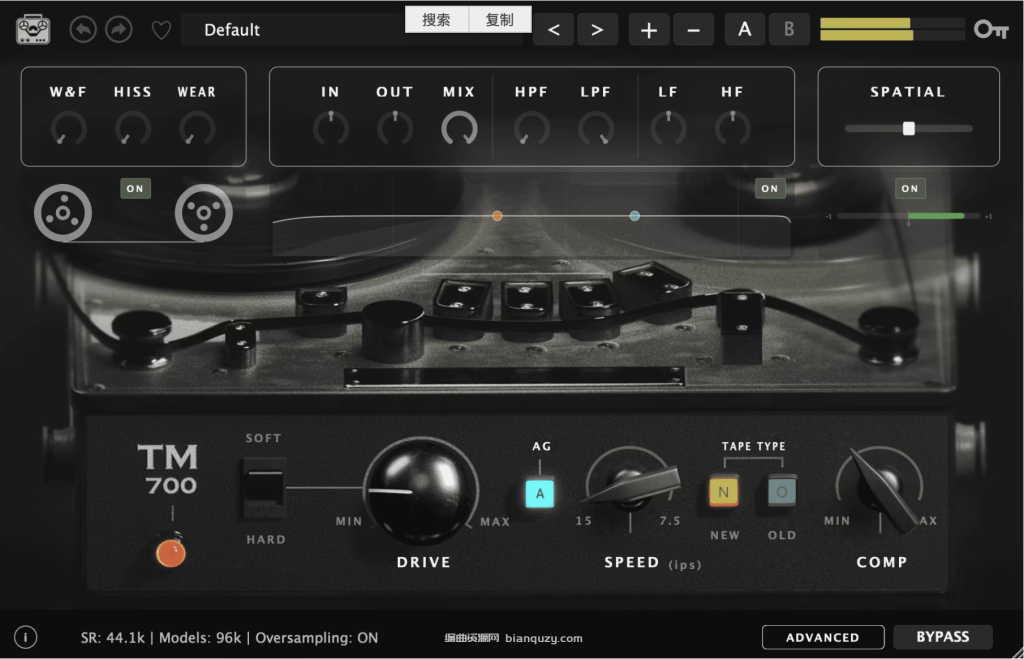 - Drive(驱动):从细腻的温暖感,到强烈的饱和度,自由调节磁带驱动程度